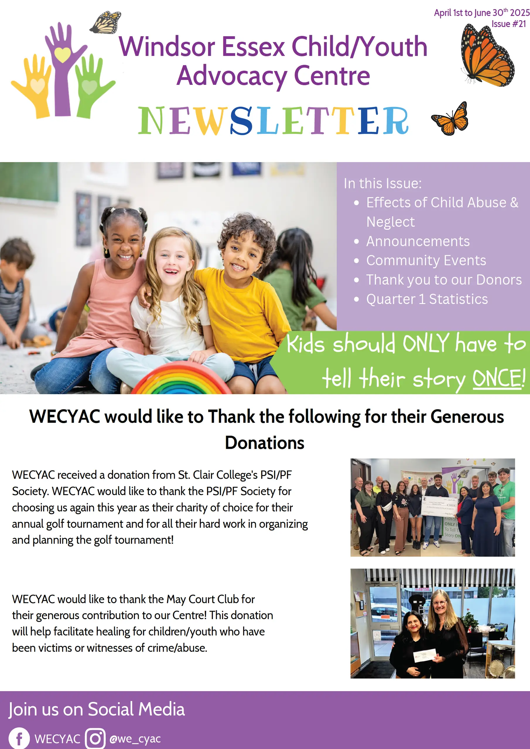 Keeping You Informed Understanding and Addressing Child Abuse Sign Up For Our Newsletter Quarterly Newletters 2025 January-March DOWNLOAD April-June DOWNLOAD 2024 Spring-Summer DOWNLOAD Fall-Winter DOWNLOAD 2023 October-December DOWNLOAD July-September DOWNLOAD April-June DOWNLOAD January-March DOWNLOAD 2022 October-December DOWNLOAD July-September DOWNLOAD April-June DOWNLOAD January-March DOWNLOAD 2021 October-December DOWNLOAD July-September DOWNLOAD April-June DOWNLOAD January-March DOWNLOAD 2020 October-December DOWNLOAD July-September DOWNLOAD April-June DOWNLOAD January-March DOWNLOAD 2019 October-December DOWNLOAD Newsletter Signup